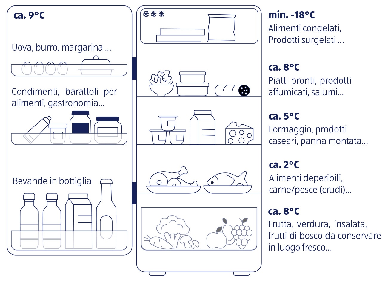 È importante pensare prima di fare la spesa a che cosa servirà nei giorni successivi. In questo modo si eviterà di sovraffollare il frigorifero e si potranno anche provare nuove ricette. Altrettanto importante: programmare un tempo sufficiente per fare la spesa. Spesso chi è di corsa o ha fame compra troppe cose o compra male, quindi prenditi il tuo tempo! - Ottimizza lo spazio nel tuo frigorifero