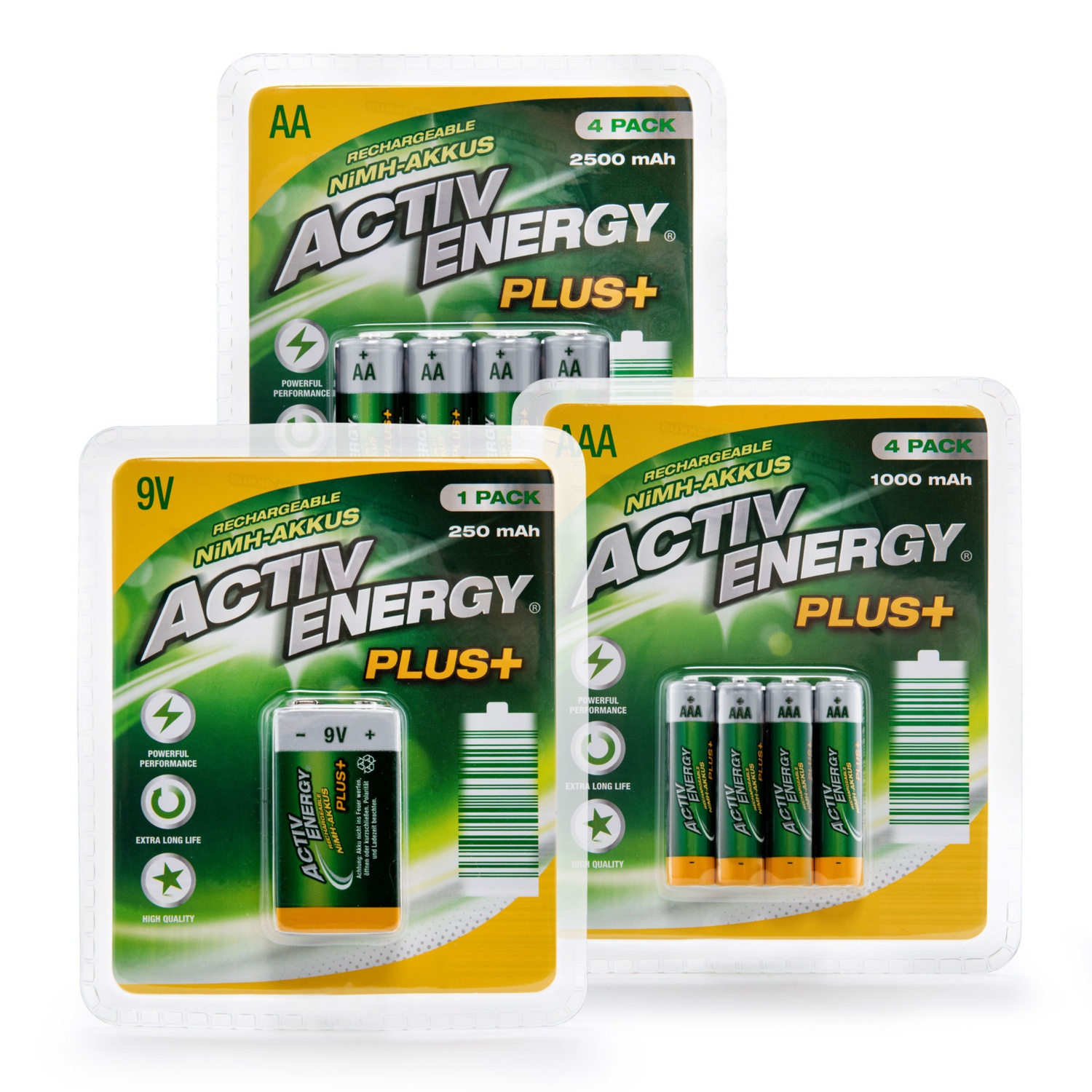 9 V: confezione singola (1 pezzo), 250 mAh