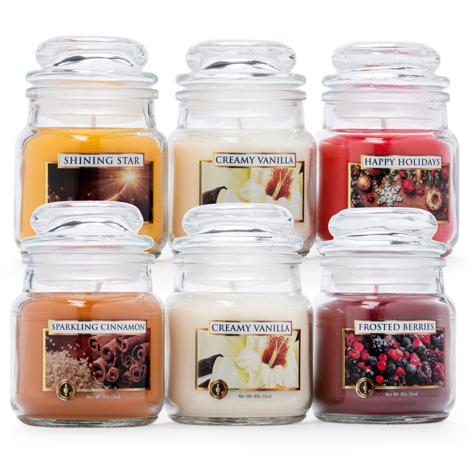 Set composto da 3 piccole candele in vasetto