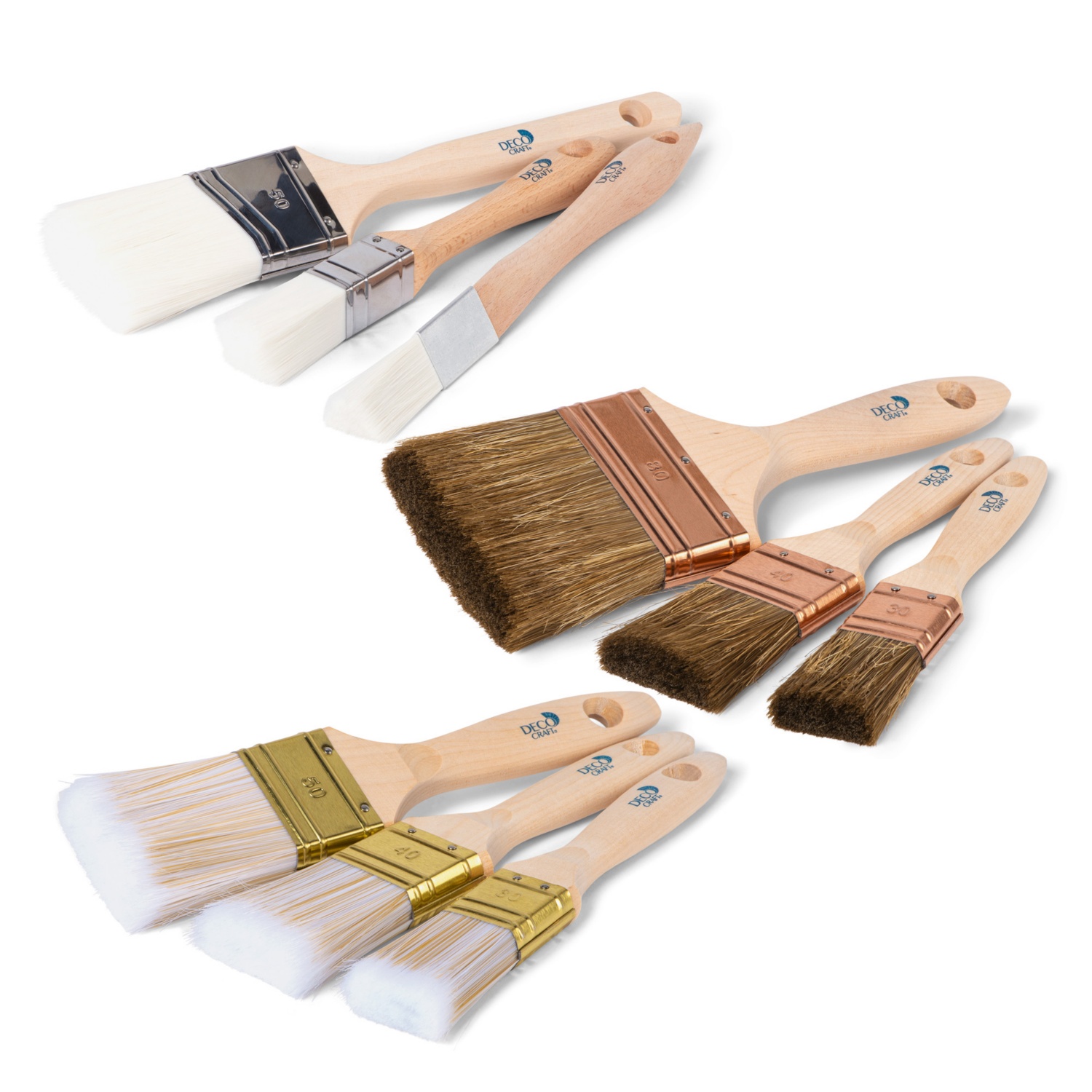 Set di pennelli professionali universali: 1 pennello piatto da5 cm,1 da 4 cme 1 da 3 cm
