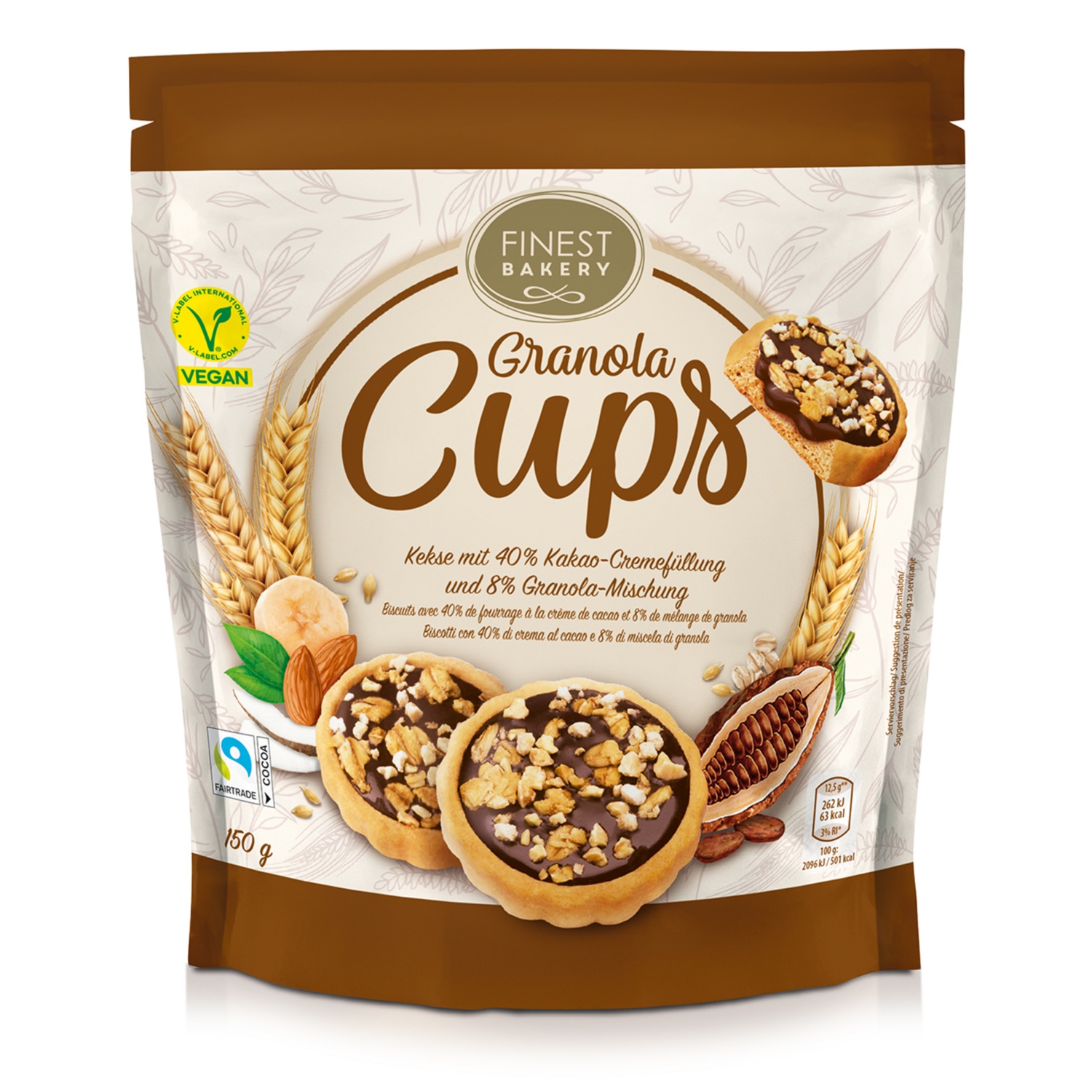 FINEST BAKERY Coppette di granola al gusto cacao e banana