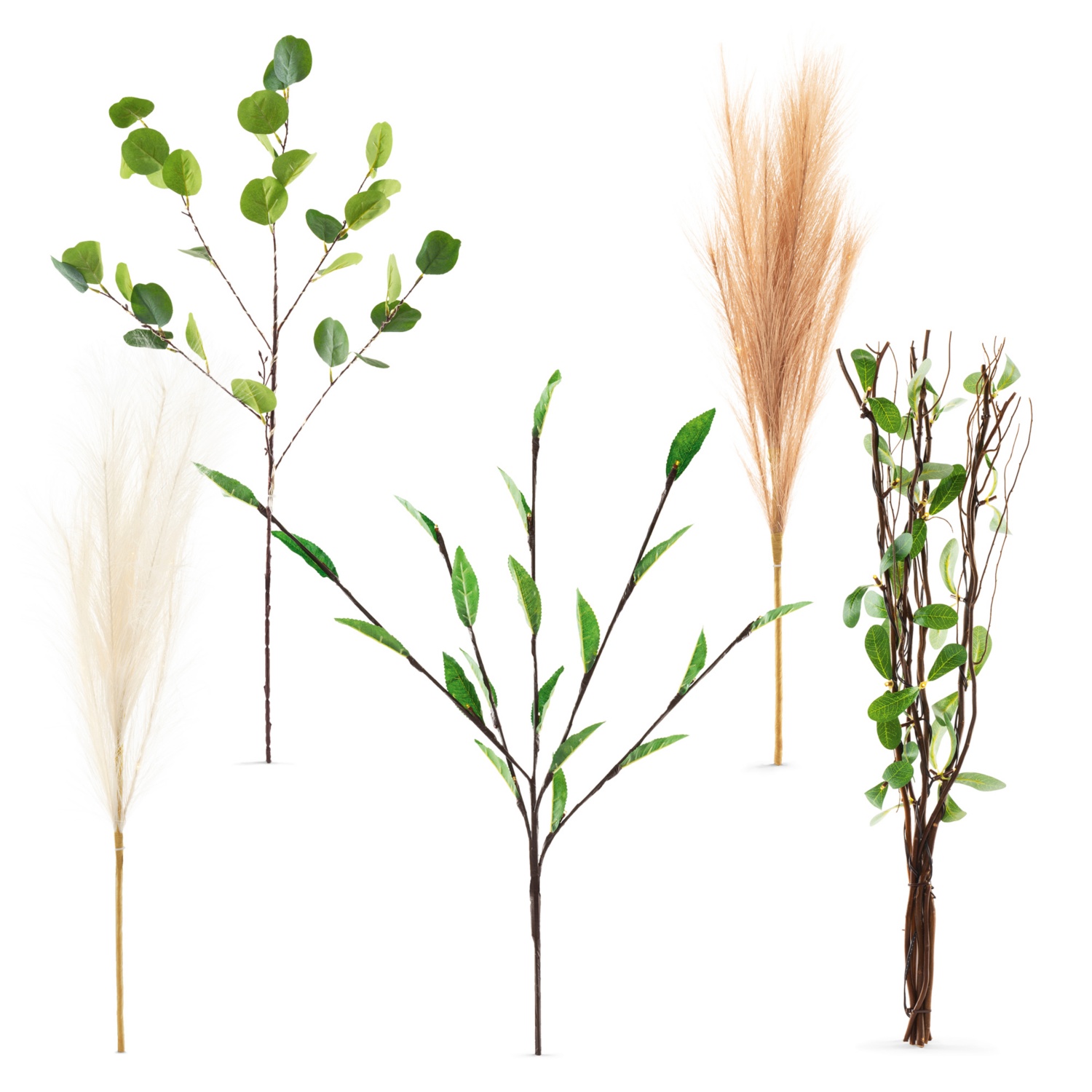 Rami di diversi tipi con catene di luci