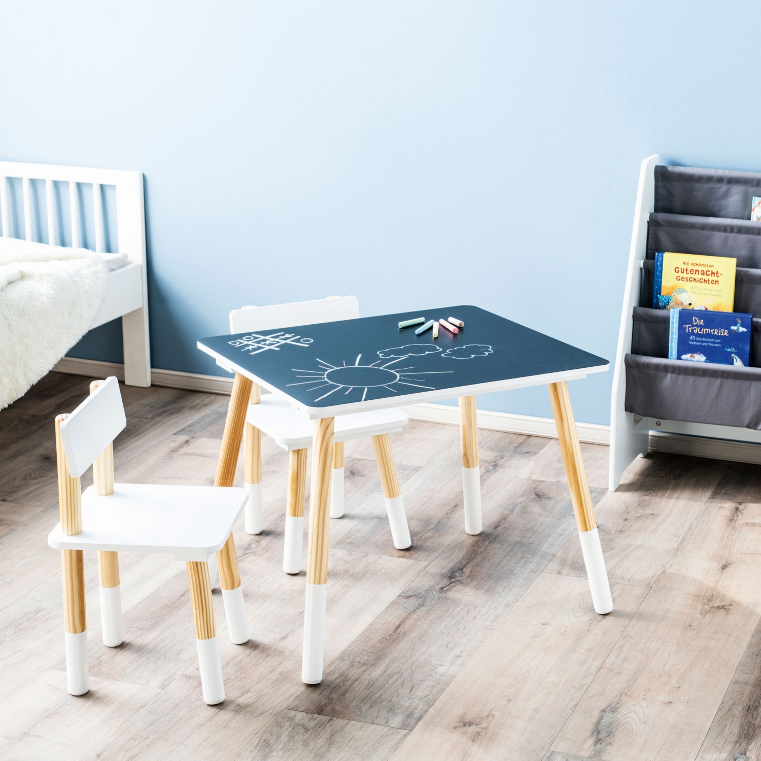 Composto da 1 tavolo a misura di bambino e 2 sedie abbinate