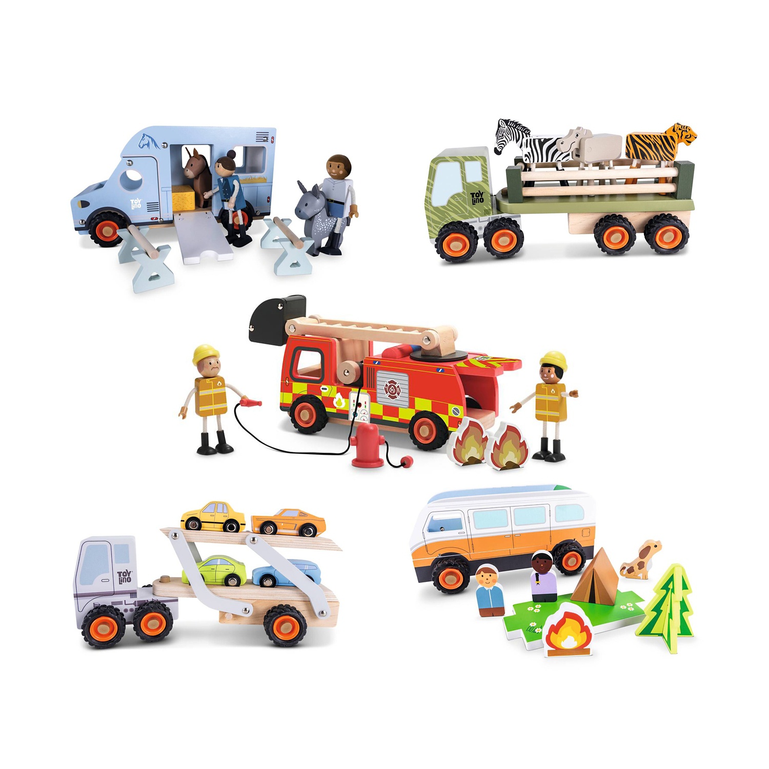 5 modelli di veicoli giocattolo in legno grandi