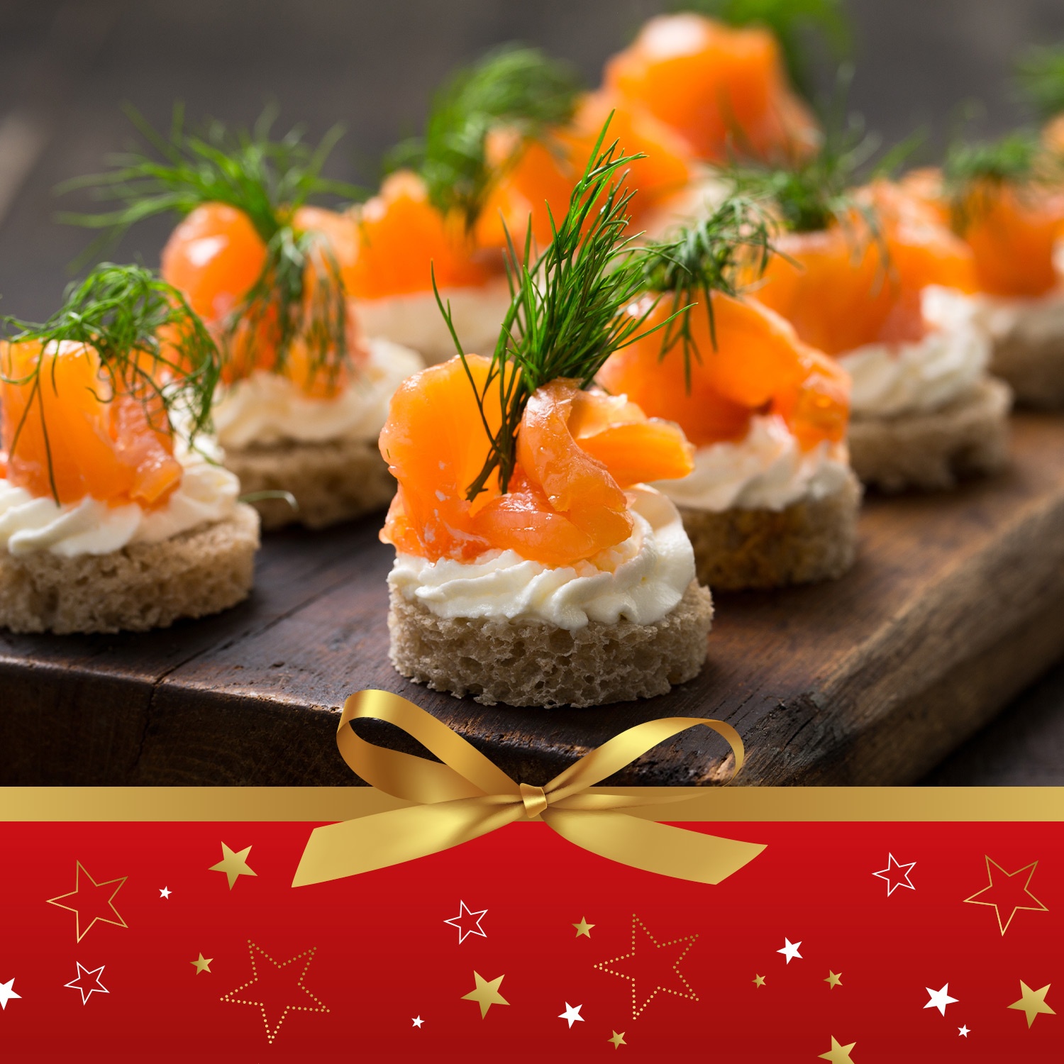 DISCHETTI DI PANETTONE CON BURRO ALLE ERBE E TROTA AFFUMICATA